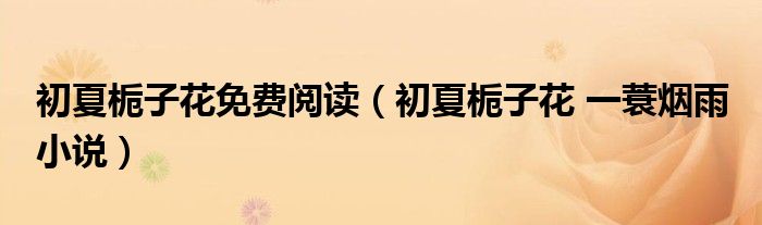 大家好,小晋来为大家解答以下问题,关于初夏栀子花免费阅读,初夏栀子花 一蓑烟雨 小说很多人还不知道,今天让我们一起来看看吧!