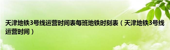 大家好,小晋来为大家解答以下问题,关于天津地铁3号线运营时间表每班地铁时刻表,天津地铁3号线运营时间很多人还不知道,今天让我们一起来看看吧!