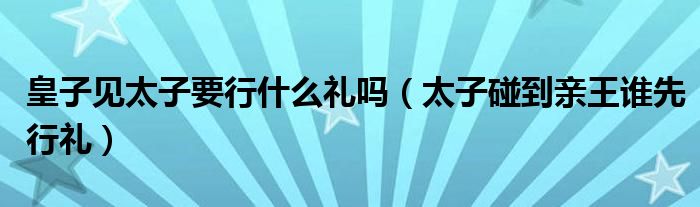 大家好,小晋来为大家解答以下问题,关于皇子见太子要行什么礼吗,太子碰到亲王谁先行礼很多人还不知道,今天让我们一起来看看吧!
