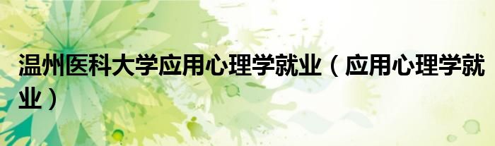 大家好,小晋来为大家解答以下问题,关于温州医科大学应用心理学就业,应用心理学就业很多人还不知道,今天让我们一起来看看吧!