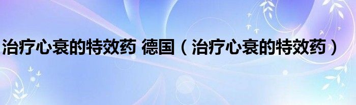 关于治疗心衰的特效药 德国,治疗心衰的特效药这个很多人还不知道,今天菲菲来为大家解答以上的问题,现在让我们一起来看看吧!