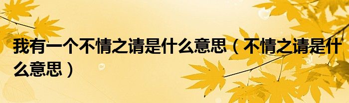 关于我有一个不情之请是什么意思,不情之请是什么意思这个很多人还不知道,今天菲菲来为大家解答以上的问题,现在让我们一起来看看吧!