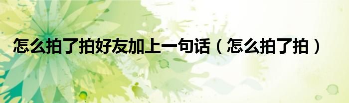 大家好,来宝来为大家解答以下问题,怎么拍了拍好友加上一句话,怎么拍了拍很多人还不知道,今天让我们一起来看看吧!