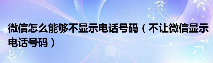 大家好,小晋来为大家解答以下问题,关于微信怎么能够不显示电话号码,不让微信显示电话号码很多人还不知道,今天让我们一起来看看吧!