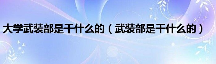 大家好,小晋来为大家解答以下问题,关于大学武装部是干什么的,武装部是干什么的很多人还不知道,今天让我们一起来看看吧!