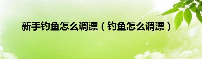 关于新手钓鱼怎么调漂,钓鱼怎么调漂这个很多人还不知道,今天菲菲来为大家解答以上的问题,现在让我们一起来看看吧!