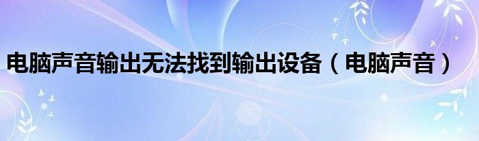 大家好,来宝来为大家解答以下问题,电脑声音输出无法找到输出设备,电脑声音很多人还不知道,今天让我们一起来看看吧!