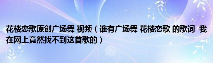 关于花楼恋歌原创广场舞 视频,谁有广场舞 花楼恋歌 的歌词 我在网上竟然找不到这首歌的这个很多人还不知道,今天菲菲来为大家解答以上的问题,现在让我们一起来看看吧!