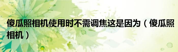 大家好,来宝来为大家解答以下问题,傻瓜照相机使用时不需调焦这是因为,傻瓜照相机很多人还不知道,今天让我们一起来看看吧!