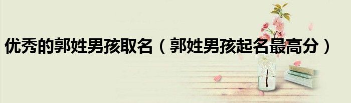 关于优秀的郭姓男孩取名,郭姓男孩起名最高分这个很多人还不知道,今天菲菲来为大家解答以上的问题,现在让我们一起来看看吧!