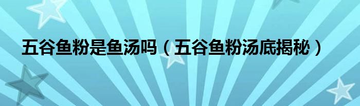 大家好,小晋来为大家解答以下问题,关于五谷鱼粉是鱼汤吗,五谷鱼粉汤底揭秘很多人还不知道,今天让我们一起来看看吧!