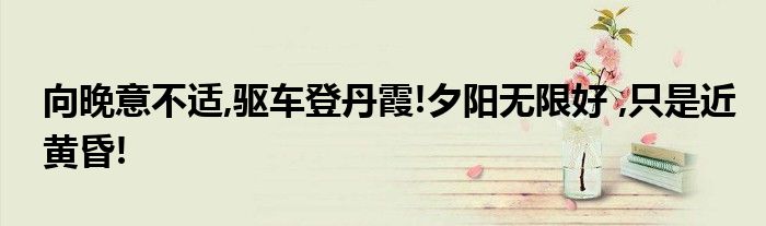 关于向晚意不适,驱车登丹霞!夕阳无限好 ,只是近黄昏!这个很多人还不知道,今天菲菲来为大家解答以上的问题,现在让我们一起来看看吧!