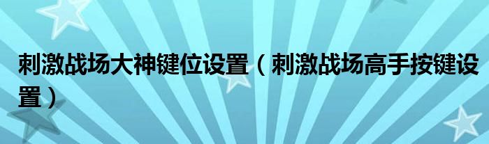 刺激战场大神键位设置(刺激战场高手按键设置)