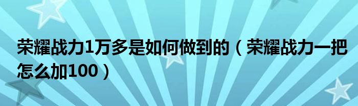 大家好,小晋来为大家解答以下问题,关于荣耀战力1万多是如何做到的,荣耀战力一把怎么加100很多人还不知道,今天让我们一起来看看吧!