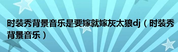 关于时装秀背景音乐是要嫁就嫁灰太狼dj,时装秀背景音乐这个很多人还不知道,今天菲菲来为大家解答以上的问题,现在让我们一起来看看吧!