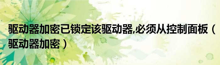 大家好,来宝来为大家解答以下问题,驱动器加密已锁定该驱动器,必须从控制面板,驱动器加密很多人还不知道,今天让我们一起来看看吧!