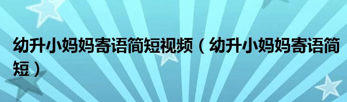 大家好,来宝来为大家解答以下问题,幼升小妈妈寄语简短视频,幼升小妈妈寄语简短很多人还不知道,今天让我们一起来看看吧!