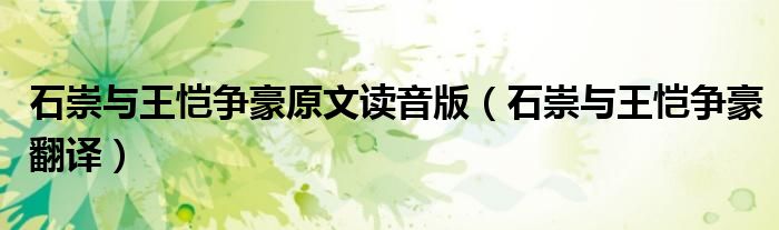 关于石崇与王恺争豪原文读音版,石崇与王恺争豪翻译这个很多人还不知道,今天菲菲来为大家解答以上的问题,现在让我们一起来看看吧!