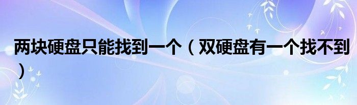 关于两块硬盘只能找到一个,双硬盘有一个找不到这个很多人还不知道,今天菲菲来为大家解答以上的问题,现在让我们一起来看看吧!