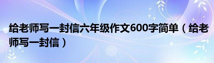 关于给老师写一封信六年级作文600字简单,给老师写一封信这个很多人还不知道,今天菲菲来为大家解答以上的问题,现在让我们一起来看看吧!