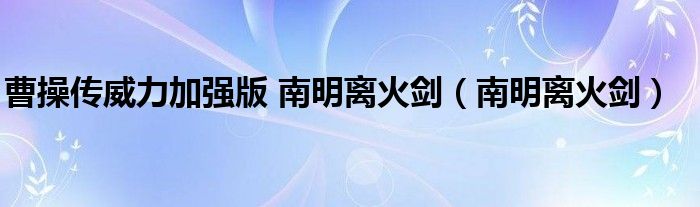 大家好,小晋来为大家解答以下问题,关于曹操传威力加强版 南明离火剑,南明离火剑很多人还不知道,今天让我们一起来看看吧!