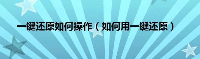 一键还原如何操作(如何用一键还原)