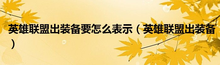 大家好,来宝来为大家解答以下问题,英雄联盟出装备要怎么表示,英雄联盟出装备很多人还不知道,今天让我们一起来看看吧!
