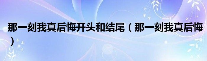 关于那一刻我真后悔开头和结尾,那一刻我真后悔这个很多人还不知道,今天菲菲来为大家解答以上的问题,现在让我们一起来看看吧!