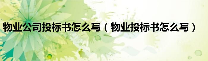 关于物业公司投标书怎么写,物业投标书怎么写这个很多人还不知道,今天菲菲来为大家解答以上的问题,现在让我们一起来看看吧!