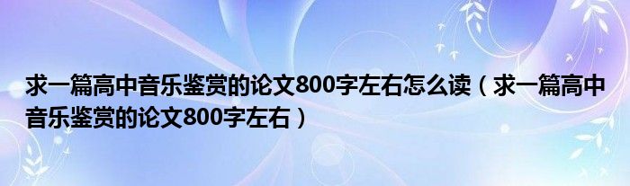 关于求一篇高中音乐鉴赏的论文800字左右怎么读,求一篇高中音乐鉴赏的论文800字左右这个很多人还不知道,今天菲菲来为大家解答以上的问题,现在让我们一起来看看吧!