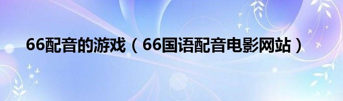 关于66配音的游戏,66国语配音电影网站这个很多人还不知道,今天菲菲来为大家解答以上的问题,现在让我们一起来看看吧!
