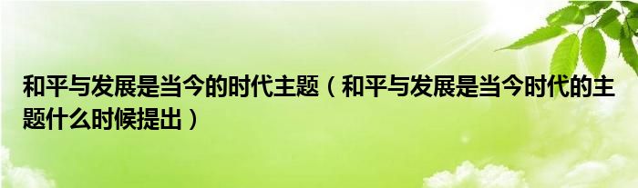 关于和平与发展是当今的时代主题,和平与发展是当今时代的主题什么时候提出这个很多人还不知道,今天菲菲来为大家解答以上的问题,现在让我们一起来看看吧!