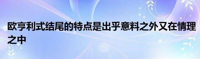 关于欧亨利式结尾的特点是出乎意料之外又在情理之中这个很多人还不知道,今天菲菲来为大家解答以上的问题,现在让我们一起来看看吧!