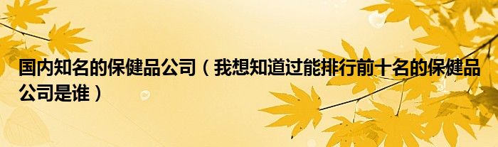关于国内知名的保健品公司,我想知道过能排行前十名的保健品公司是谁这个很多人还不知道,今天菲菲来为大家解答以上的问题,现在让我们一起来看看吧!