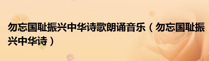 关于勿忘国耻振兴中华诗歌朗诵音乐,勿忘国耻振兴中华诗这个很多人还不知道,今天菲菲来为大家解答以上的问题,现在让我们一起来看看吧!