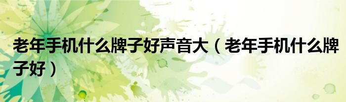 关于老年手机什么牌子好声音大,老年手机什么牌子好这个很多人还不知道,今天菲菲来为大家解答以上的问题,现在让我们一起来看看吧!