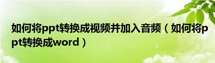 关于如何将ppt转换成视频并加入音频,如何将ppt转换成word这个很多人还不知道,今天菲菲来为大家解答以上的问题,现在让我们一起来看看吧!
