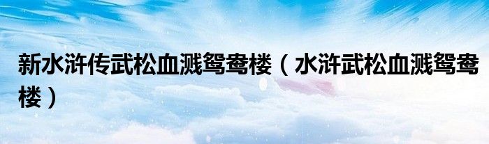 关于新水浒传武松血溅鸳鸯楼,水浒武松血溅鸳鸯楼这个很多人还不知道,今天菲菲来为大家解答以上的问题,现在让我们一起来看看吧!