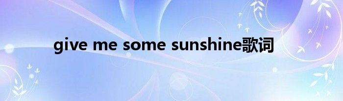 关于give me some sunshine歌词这个很多人还不知道,今天菲菲来为大家解答以上的问题,现在让我们一起来看看吧!