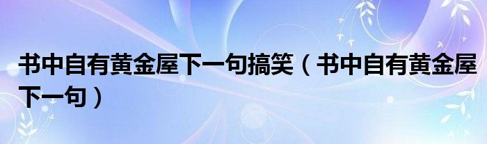 大家好,小晋来为大家解答以下问题,关于书中自有黄金屋下一句搞笑,书中自有黄金屋下一句很多人还不知道,今天让我们一起来看看吧!