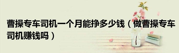 大家好,小晋来为大家解答以下问题,关于曹操专车司机一个月能挣多少钱,做曹操专车司机赚钱吗很多人还不知道,今天让我们一起来看看吧!