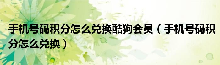大家好,小晋来为大家解答以下问题,关于手机号码积分怎么兑换酷狗会员,手机号码积分怎么兑换很多人还不知道,今天让我们一起来看看吧!