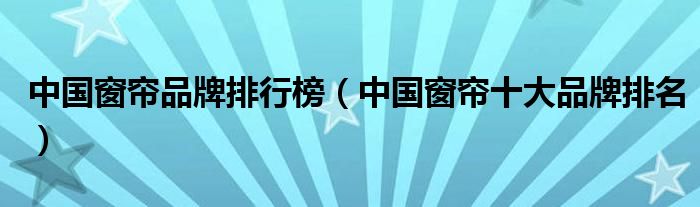 1、中国窗帘十大品牌 摩力克 2、志达 3、大视野 4、美居乐 5、红磨坊 6、欧博莱 7、新洪业 8、新大宏 9、伊莎莱 10、裕隆。