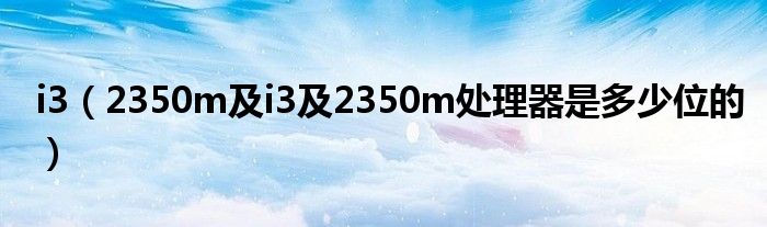 大家好,小常来为大家解答以上问题。i3,2350m及i3及2350m处理器是多少位的很多人还不知道,现在让我们一起来看看吧!