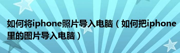 有很多种方法: 1、用数据线和电脑链接,然后打开“我的电脑”,会看到有一个图标为照相机一样的叫“apple iphone”的文件夹,双击打开即可看到iphone里面所有的照片,直接复制出来就可以; 2、用itunes直接导出; 3、在电脑和手机上各装一个金山快盘,然后在iphone上用金山快盘将照片备份;然后登陆电脑版的金山快盘(也可以直接登陆网页版快盘),就可以直接复制(或下载)备份的照片了。这一个方法我认为是最好的方法,因为在iphone上将照片备份到快盘后,以后可以在任意电脑上下载和观看备份的照片。4.电脑安装电脑版微信,通过微信里面的文件传输助手将手机中的照片传到电脑。5.通过qq软件里面的手机和电脑互传功能将手机中照片传到电脑。