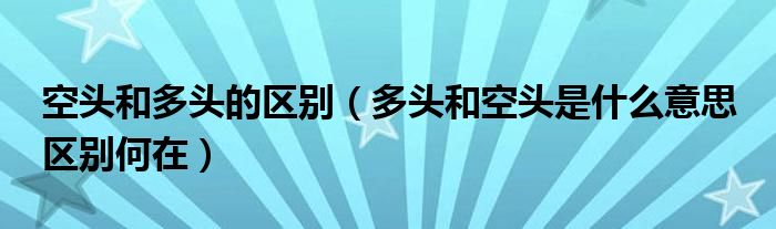 关于空头和多头的区别,多头和空头是什么意思 区别何在这个很多人还不知道,今天菲菲来为大家解答以上的问题,现在让我们一起来看看吧!