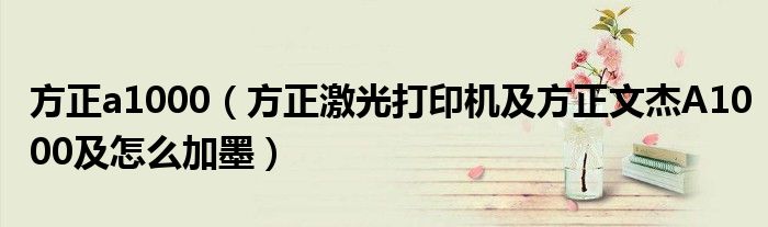 大家好,小常来为大家解答以上问题。方正a1000,方正激光打印机及方正文杰A1000及怎么加墨很多人还不知道,现在让我们一起来看看吧!