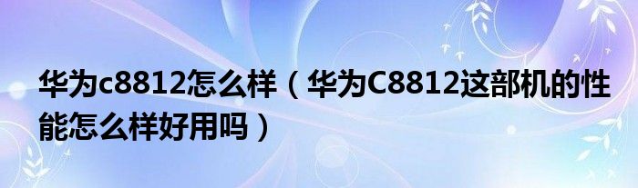 2,华为C8812手机怎么样啊!:你好,华为C8812搭载1G的高通处理器,安卓4.0.3系统,4.0寸大屏,内存搭配是4GROM+512MBRAM,整体性能还是很不错的。但是由于屏幕的材质问题很容易失灵,我个人现在就在使用这款手机,屏幕的确失灵过。但总的来说,性价比还是很不错的,3D游戏的效果也是可圈可点。