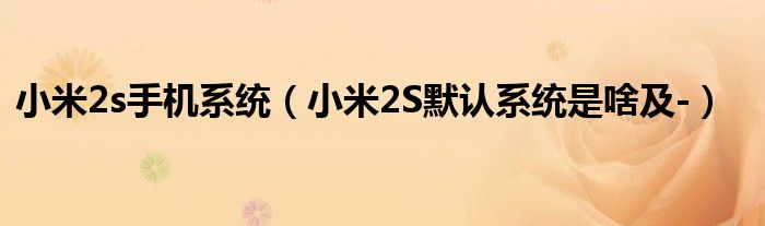 8,小米2S默认系统是啥?: 小米2S手机的出厂系统是MIUI V5 JLB 13.0版本系统。 小米2S手机内置的是基于Android 4.1的MIUI V5系统,MIUI(米柚)是小米科技旗下基于Android操作系统所开发的Android ROM,专为中国人习惯设计,全面改进原生体验,能够带给国内用户更为贴心的Android智能手机体验。2014年8月16日小米公司发布了MIUI V6。