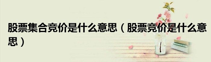 关于股票集合竞价是什么意思,股票竞价是什么意思这个很多人还不知道,今天菲菲来为大家解答以上的问题,现在让我们一起来看看吧!